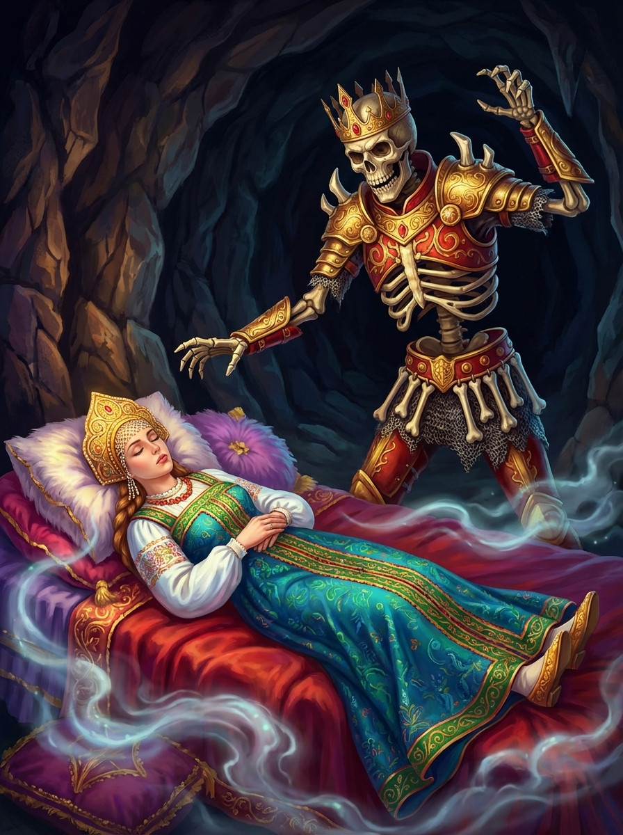 Рассердился князь Владимир на Илью Муромца и приказал его в темницу на три года посадить в глубокий погреб. Дочь Владимира тайно кормила Владимира. А через три года напал на Киев Калин-царь с несметными полчищами…