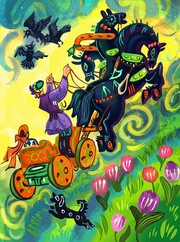 Жили дед и баба. Было у них две внучки. Уродился у них богатый урожай гороха, и дед послал внучку сторожить горох от воробьев.