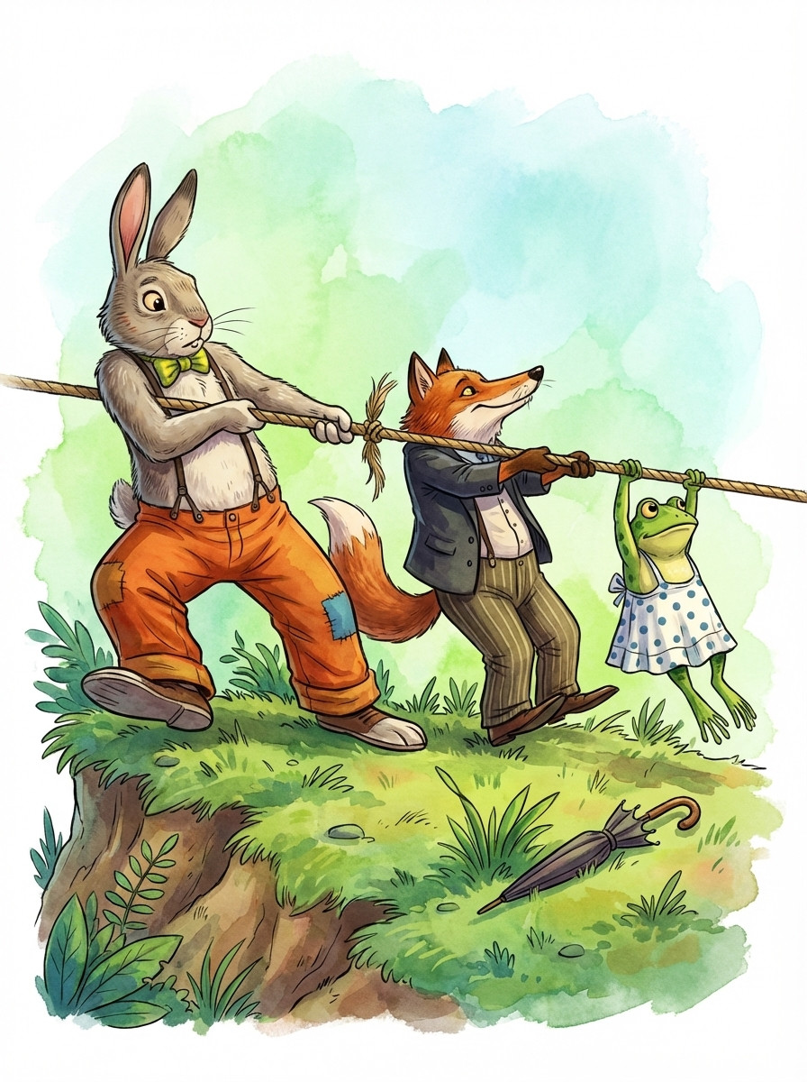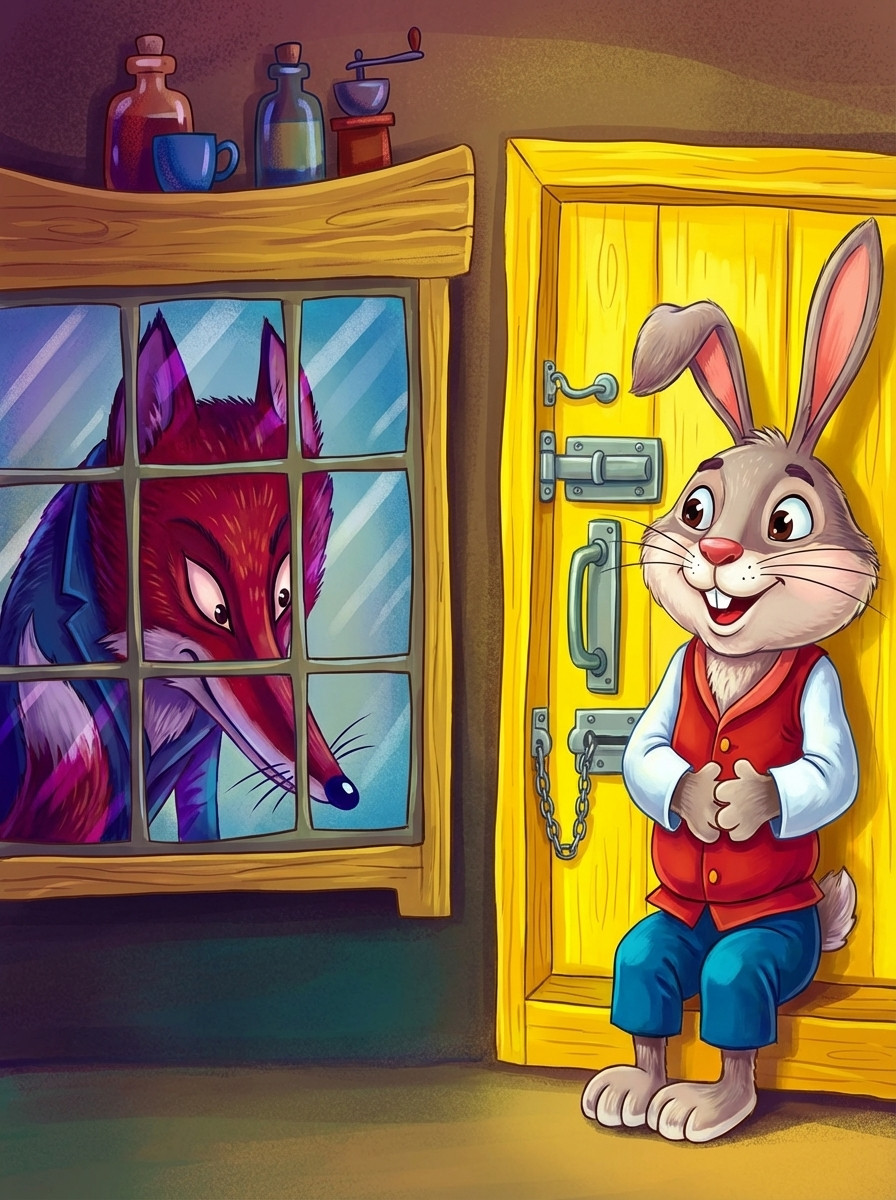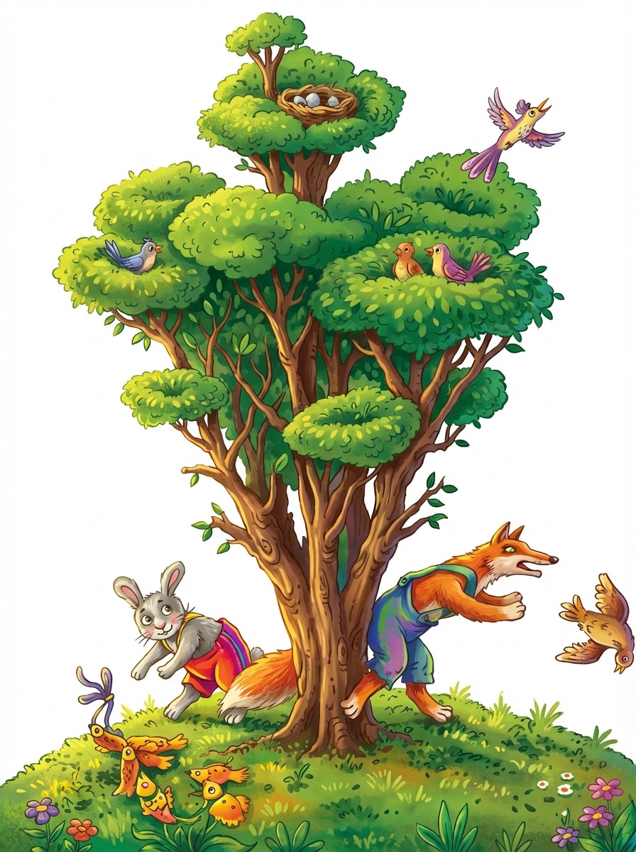 История том, как Сарыч обманывает Лиса, желающего поймать Кролика. Сарыч убеждает Лиса, что Кролик спит где-то рядом, и Лис, пытаясь его вспугнуть, принимается рубить дерево. Каждый удар топора Сарыч комментирует возгласами, будто бы видит испуганного Кролика...