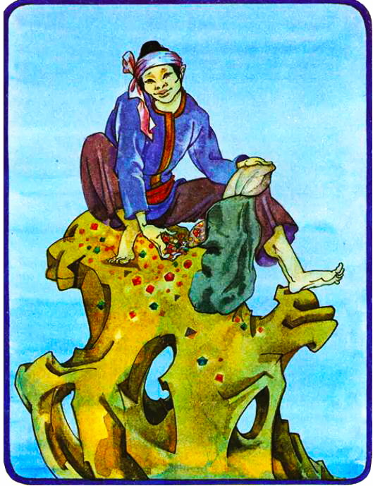 Жили два брата, которые рано осиротели. Старший брат был жаден и скуп и забрал себе все наследство, а младшему брату оставил только хижину. Рядом с хижиной росло дерево карамбола, оно давало сладкие плоды. Они относили их на рынок и продавали. Тем и жили супруги. И вот повадился прилетать огромный Ворон и склевывал плоды...