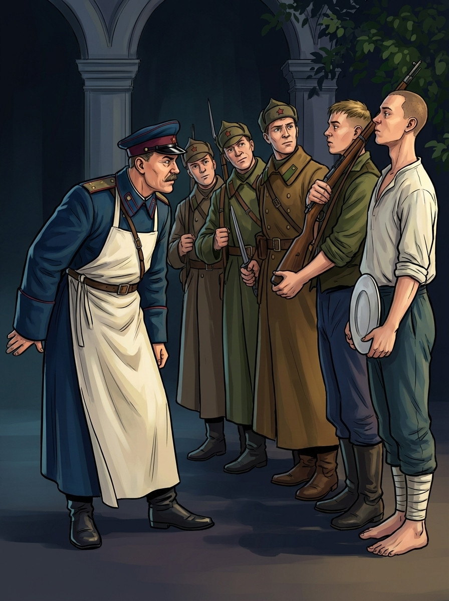 История произошла с двумя солдатами: Пугачевым и Вьюшкиным. По роте объявили, что завтра будут состязания на скорость разборки и сборки пулемета, а победитель будет он снят на карточку вместе с пулеметом и надписью: за отличную подготовку по пулеметной части...
