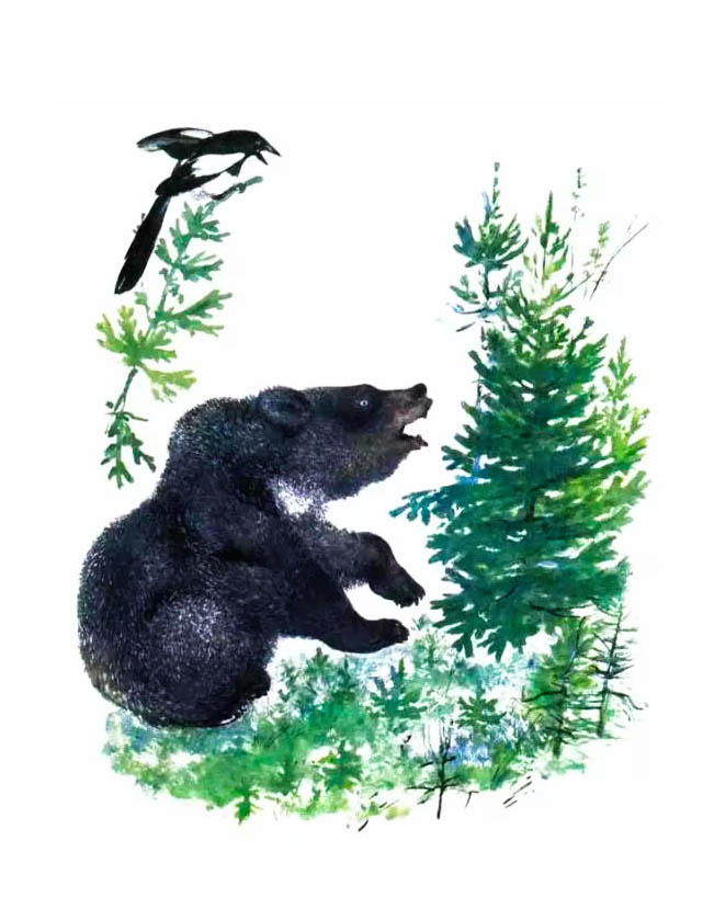 Рассказ про сороку, которая летает по лесу и все слушает, выглядывает — нет ли где еды-добычи? Что плохо лежит — она тут как тут, в чужом гнезде яйца расклюет, птенцов съест. И зверю несладко от сороки: не даёт сорока укрыться от врагов. Всем рассказывает, где кто прячется.