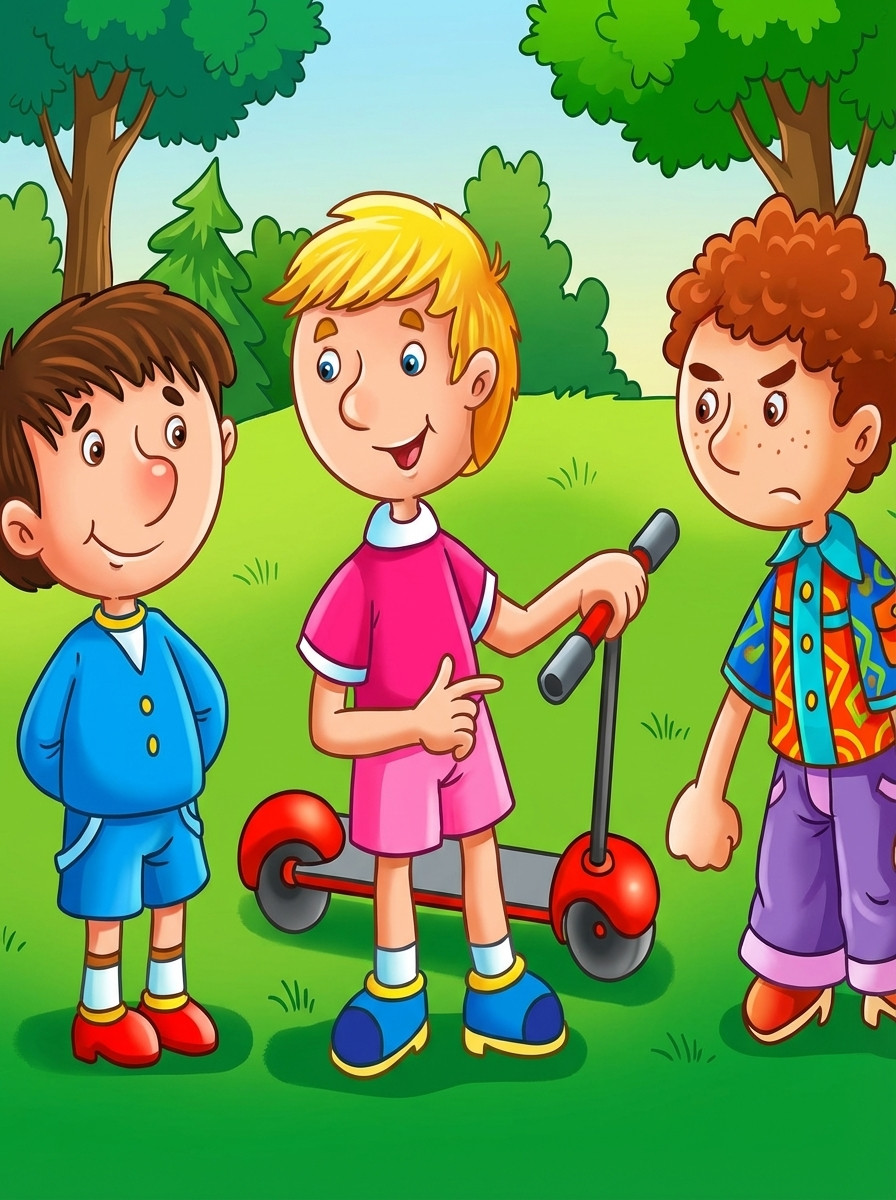 Рассказ про двух друзей Андрюшу и Славика. Они все делают вместе. Вместе играют и прогуливают школу. Но когда они принесли в класс кошку и учитель спросил кто из них это сделал, они свалили друг на друга.