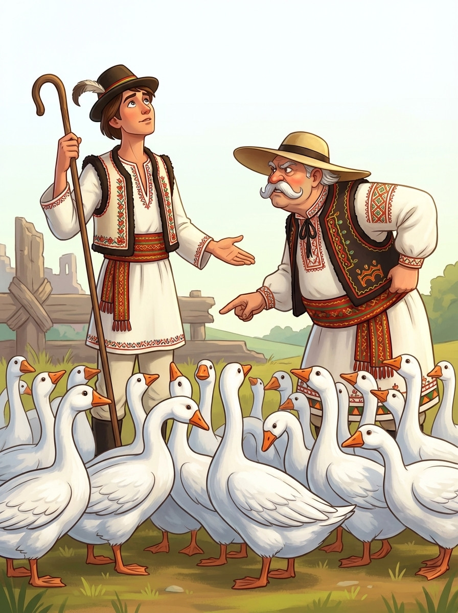Сказка про батрака, работающего птичником у богатого барина. С утра до вечера он ухаживал за птицами, а сам ни разу не отведал он курятины или гусятины! И так это было обидно батраку, что однажды поймал он гуся, приготовил и съел...