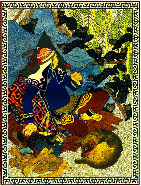 Были в роду у Бельды близнецы: Удога и Чубак. Известно, что когда близнецы родятся — это очень хорошо. Тому роду большое счастье близнецы приносят. Вот случился как-то плохой год: зверя мало стало, рыба плохо шла. Стали говорить старики, что место менять надо, что на этом месте черти зверя и рыбу распугали...
