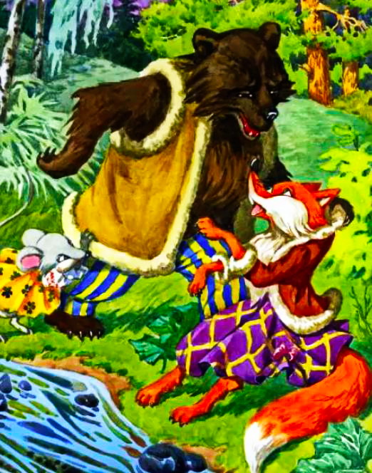 Сказка про старого, ленивого и простодушного медведя Бамсе и про плута лиса Миккеля, хитрюгу и выдумщика, который любит поддеть старого медведя и выйти сухим из воды.