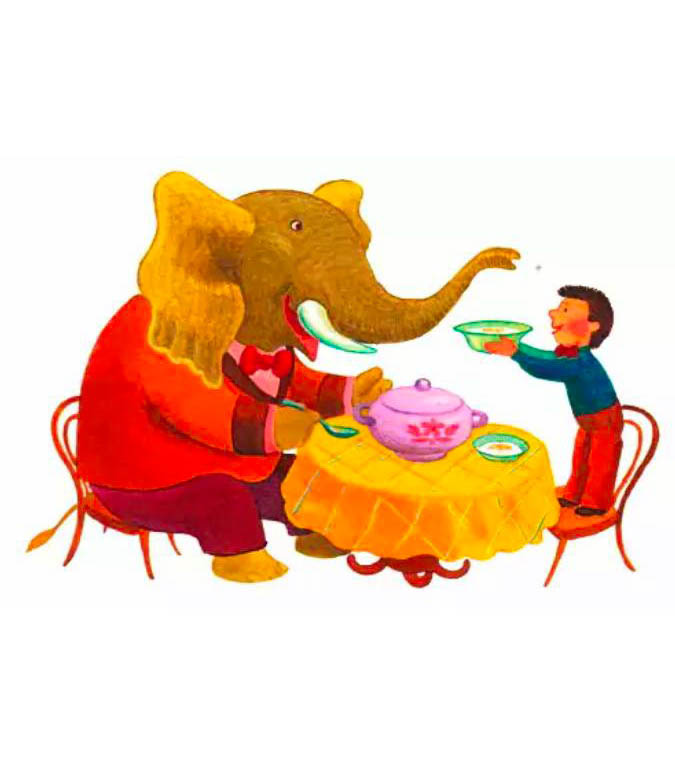 Одному мальчику очень хотелось, чтобы к нему пришел в гости слон. Он, конечно, очень большой, но путь просунет в дверь длинный хобот. Его можно будет угостить кашей.