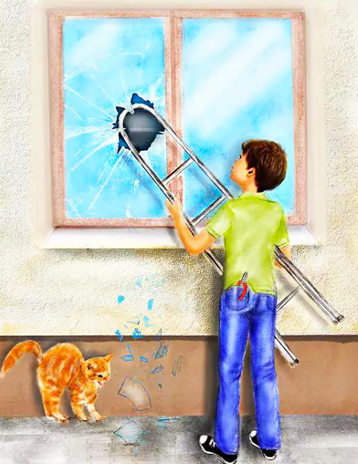 Веселый рассказ про незадачливого паренька Пашу, который однажды во время летней практики помогал учителю труда Михаилу Кузьмичу вставлять стекла в окно первого этажа. Работа была нелегкая и кропотливая, они работали весь день, и два новеньких чистеньких стекла были вставлены. Но...