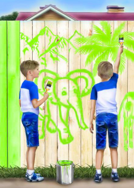Веселый рассказ о том, как два брата-близнеца помогали папе делать забор на даче. Забор получился крепкий, ровный, как чистый лист бумаги. Папа в понедельник уехал в город, а ребятам поручил покрасить забор салатовой краской...