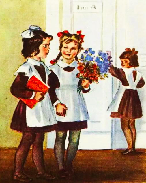 Теперь не то. Осенью Дима и Олег пошли в школу. Вместо рейтуз — длинные темные брюки. Вместо вязаных шапок — меховые, с ушами, как у мужчин. Новые шапки, новые товарищи, школьные товарищи… Новые слова, ученые деловые слова: «диктант», «математика».