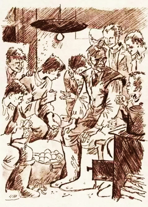 Я пробрался тайком в кладовку, вынул из ларя калач и принес его Саньке, под рубахой. Потом еще принес, потом еще, пока Санька не нажрался.
