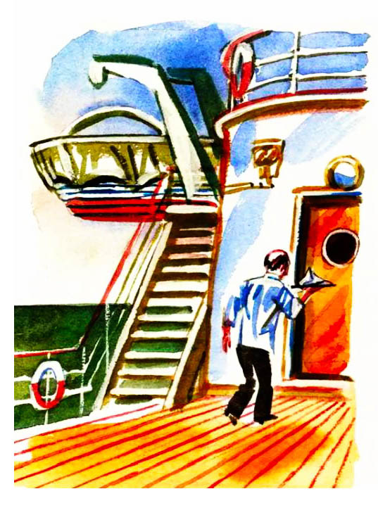 Володя заплакал. Днём ветер стал ещё сильней, волны заплёскивали на льдину, а кругом было только море. Володин папа связал из двух шестов мачту, привязал на конце красную рубаху и поставил, как флаг. Все глядели, не видать ли где парохода. От страха никто не хотел ни есть ни пить. А Володя лежал в санях и смотрел в небо: не глянет ли солнышко. И вдруг в прогалине между туч Володя увидел самолёт и закричал: