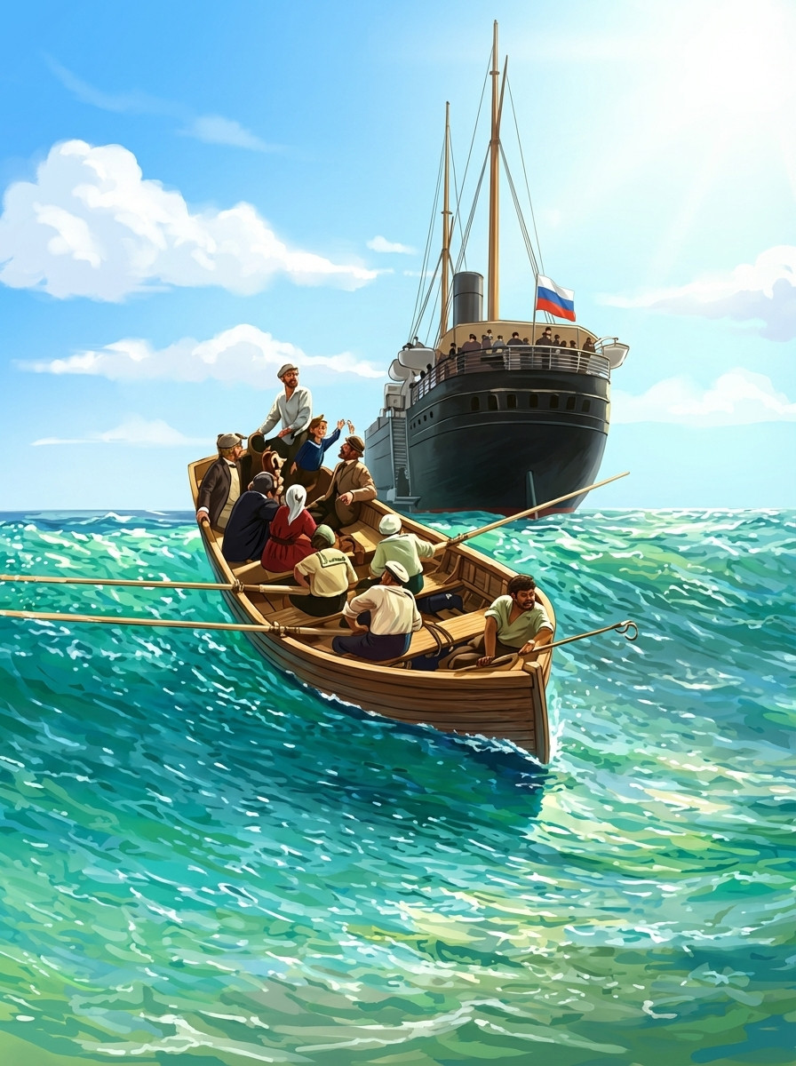 Доктор сейчас же собрал свои щипчики, сел в автомобиль и поехал к Вале. Дорога шла по берегу. С одной стороны было море, а с другой стороны крутые скалы. Автомобиль мчался во весь дух. Доктор очень боялся за Валю. Вдруг впереди загремело, и шофёр остановил автомобиль.