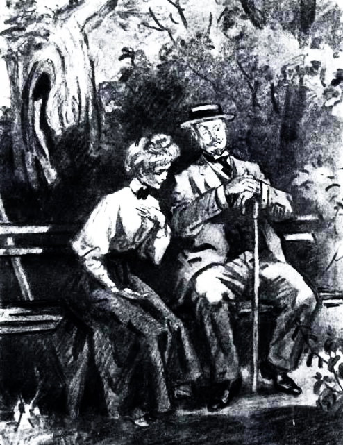 Слышатся мужские голоса, затем женский… Из-за решетки барского сада показывается барин Андрей Андреич в халате из персидской шали и с газетой в руке… Он смотрит вопросительно по направлению криков, несущихся с реки, и потом быстро семенит к купальне…