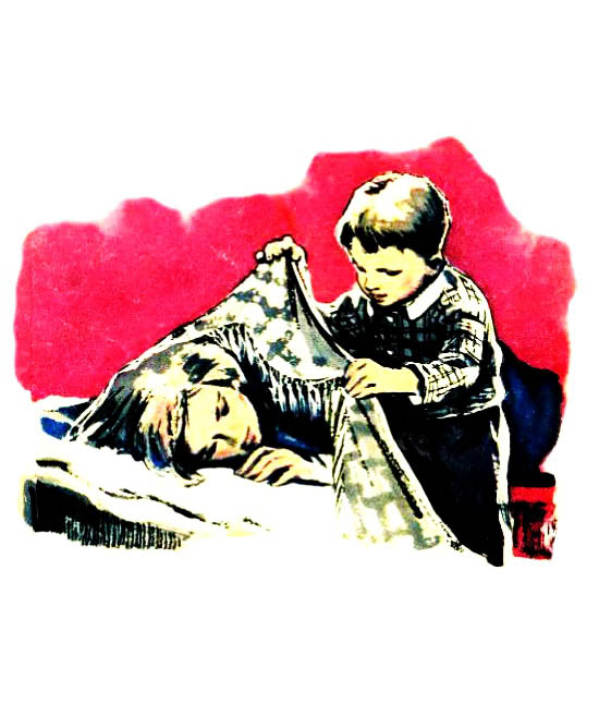 — Не снимай одеяла, — сказал мальчик. — Покуда я жив, я не дам тебе ловить рыбу не евши.