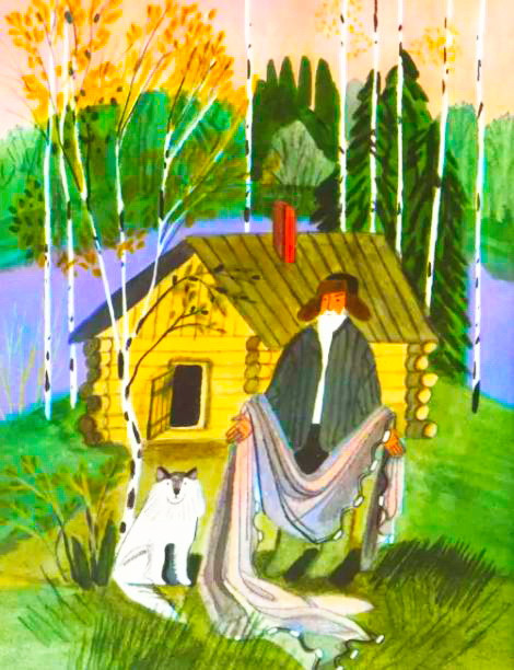 С нами в избушке живёт пёс, которого звать Дик. Он любит смотреть, как я курю. Сядет напротив и глядит, как изо рта у меня дым валит.