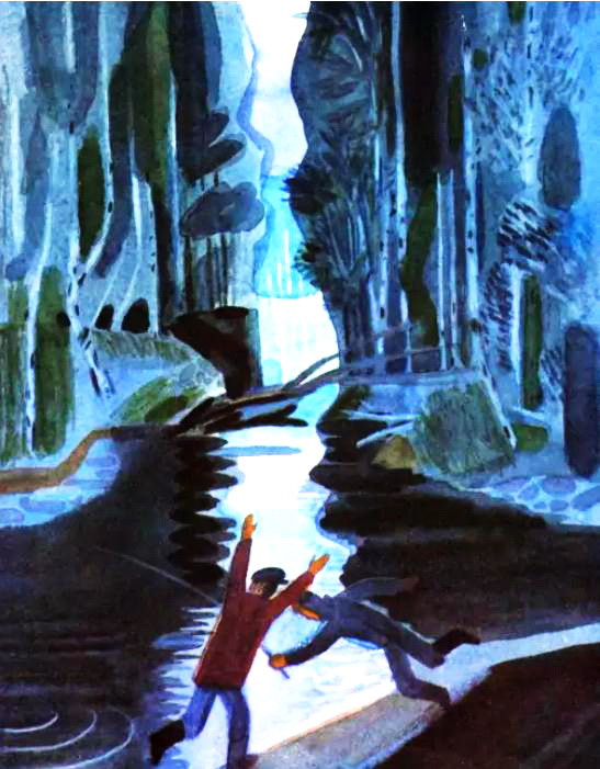 Всё быстрей бежал заяц и уже нёсся стремглав, перепрыгивая сугробы.