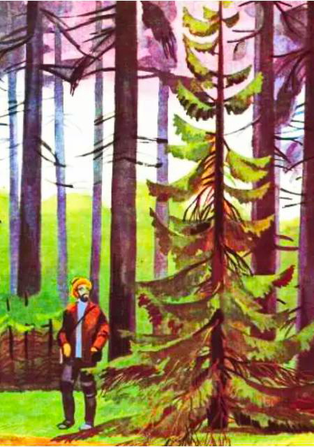Один большой гриб стал, как избушка, спустил свою крышу почти до земли — это очень старая сыроежка.
