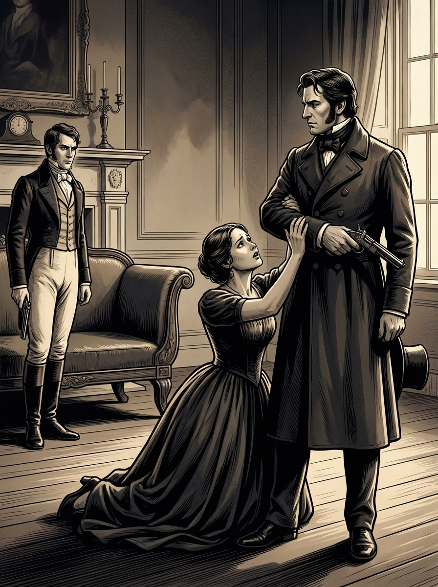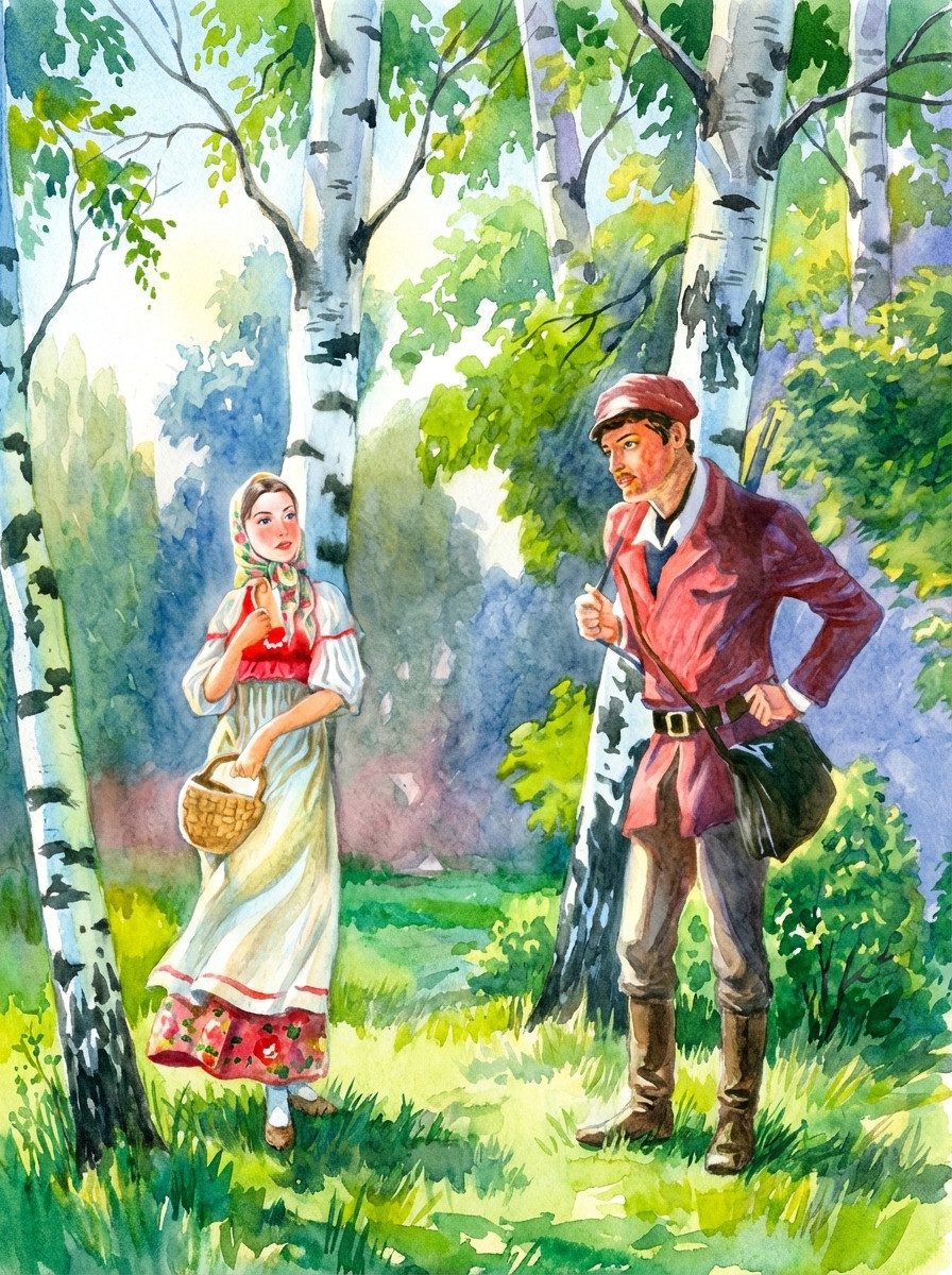Бурмин нашел Марью Гавриловну у пруда, под ивою, с книгою в руках и в белом платье, настоящей героинею романа. После первых вопросов Марья Гавриловна нарочно перестала поддерживать разговор, усиливая таким образом взаимное замешательство, от которого можно было избавиться разве только незапным и решительным объяснением. Так и случилось: Бурмин, чувствуя затруднительность своего положения, объявил, что искал давно случая открыть ей свое сердце, и потребовал минуты внимания. Марья Гавриловна закрыла книгу и потупила глаза в знак согласия.