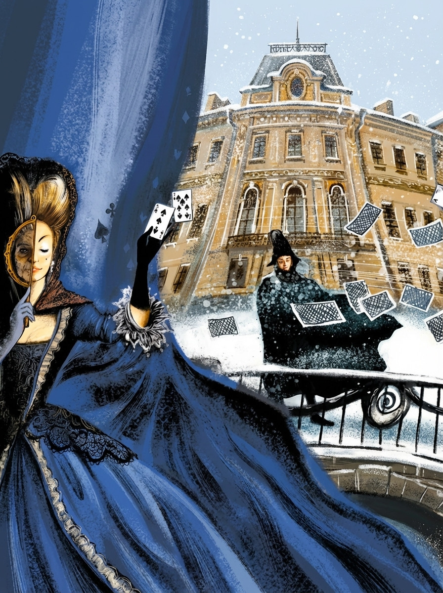 Старушка сидела однажды одна в гостиной, раскладывая гранпасьянс, как Бурмин вошел в комнату и тотчас осведомился о Марье Гавриловне. «Она в саду, — отвечала старушка, — подите к ней, а я вас буду здесь ожидать». Бурмин пошел, а старушка перекрестилась и подумала: авось дело сегодня же кончится!