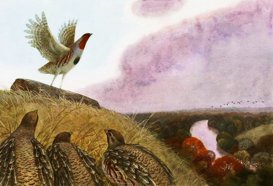 Поговорка куропаток должна была бы гласить: «На каждый месяц есть своя пища и свои враги». Наступил сентябрь. Ягоды и муравьиные яйца сменились семенами и зернами, и вместо хорьков и выдр врагами куропаток сделались охотники.