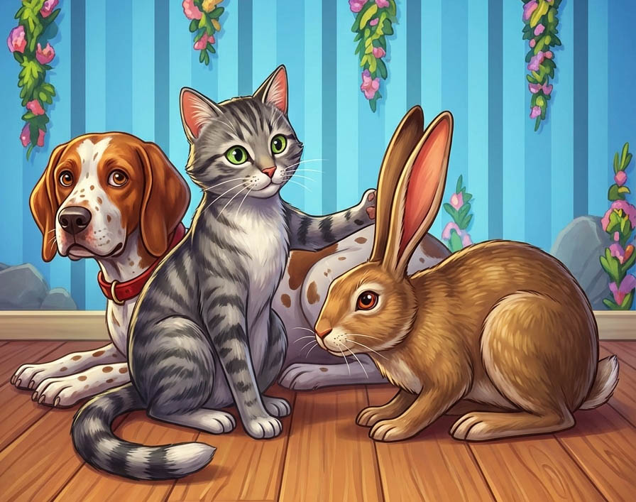 Когда в доме появился заяц, Иваныч на него не обратил никакого внимания, а Джек сначала немножко покосился, но скоро тоже привык. Потом все трое очень подружились.