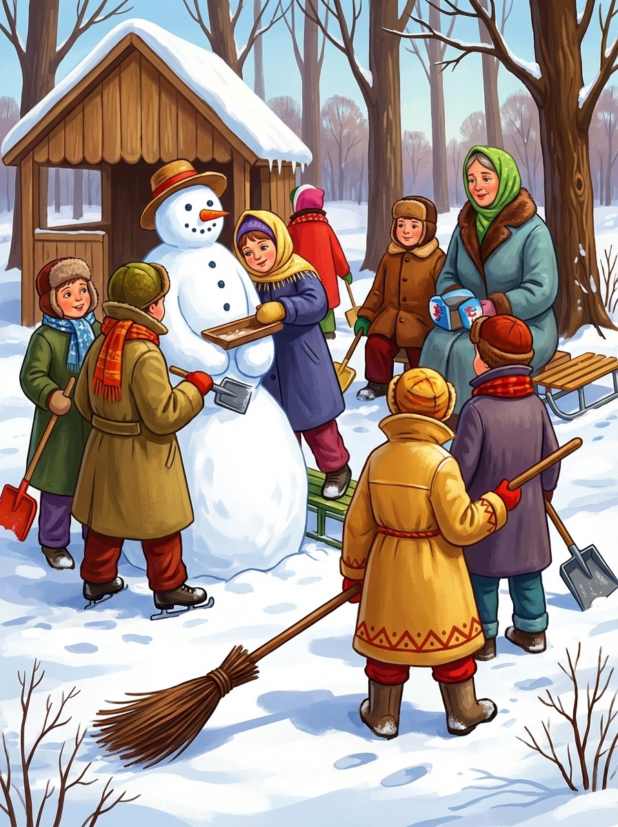 Снег перестал только к вечеру. Небо прояснилось, выглянули звёзды, яркие и лучистые, как голубые морозные иглы. Они осветили поля и леса, принаряженные, укрытые белым покровом зимы.