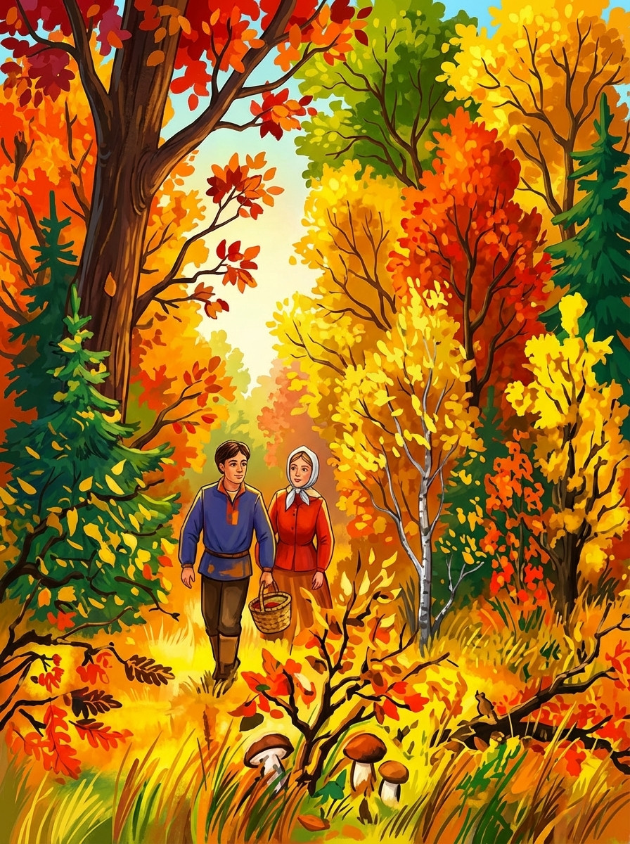 Лес шуршал: опадали побитые заморозком листья. То мелькали они в воздухе, как иволги — золотые птицы, то сползали с шорохом по стволам, как рыжие белки. Вот осыплется лес, прибьют осенние дожди травы, запорошит землю снег.