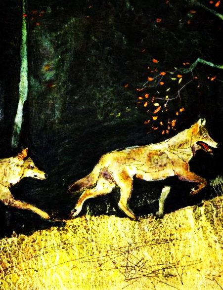 Вот ночью здесь топтался зайчик. Он обглодал кору осинок. Подняв чёрный кончик хвоста, пробежал горностай. Он охотился за птичками и мышами. На лесной опушке видны следы старой лисы. Они похожи на красивую цепочку.