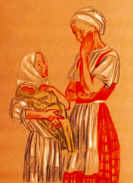 У бабки была внучка; прежде внучка была мала и всё спала, а бабка сама пекла хлебы, мела избу, мыла, шила, пряла и ткала на внучку; а после бабка стала стара и легла на печку и всё спала.