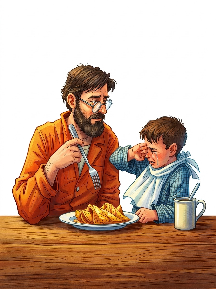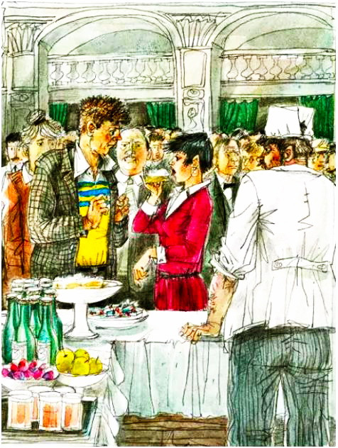 Тут мама увидела, что змея теперь не опасна, и крикнула детишек. Прибежали дети. И вот они все вчетвером без особого страха прошли мимо змеи, около самого ее носа. И маленькая мышка имела смелость крикнуть змее: