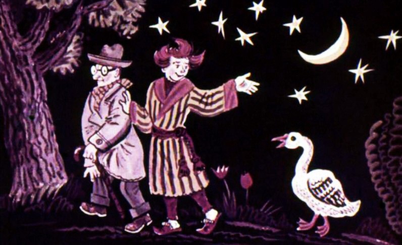 Было уже темно. Жираф с фонарём освещал мне дорогу. Гусь клюнул меня в ногу, когда я нечаянно на грядку наступил. Медведь открыл калитку.