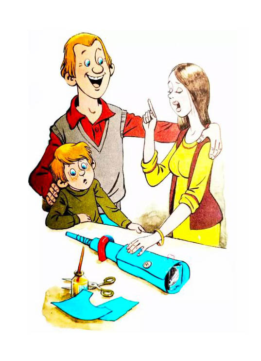 Дениска целыми днями лазает по заборам, скачет по деревьям и носится по крышам. От этого одежда на нем постоянно рвется и пачкается. Мама с папой придумали трубу для наблюдения за сыном.