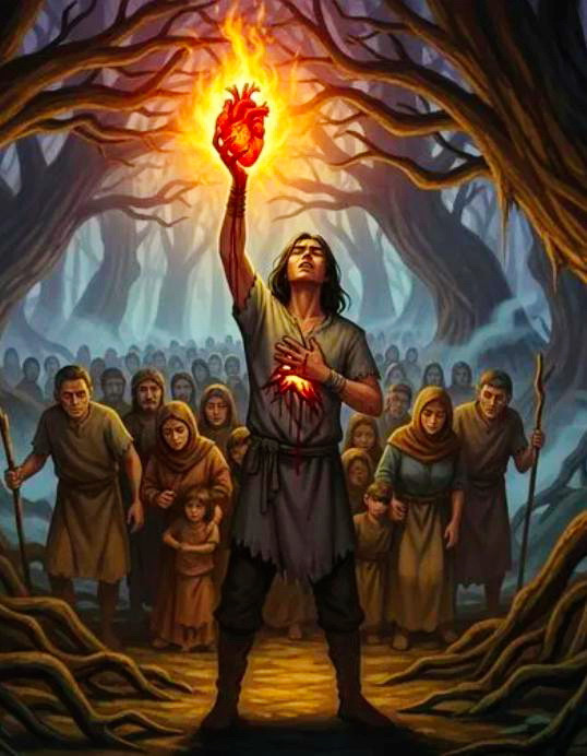Легенда про отважного юношу, который спас свой народ. Его племя враги загнали в глубь непроходимого леса, люди стали болеть и умирать. Но тут явился Данко и спас всех. ((Из рассказа Старуха Изергиль)