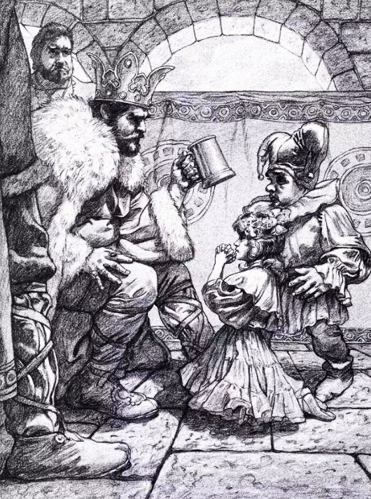 В одном королевстве жил король, который очень любил шутить. У него был шут-карлик по имени Лягушонок. Карлика вместе с девушкой Трипеттой подарил королю один генерал. Однажды король решил устроить маскарад и поручил Лягушонку придумать для них нечто особенное...