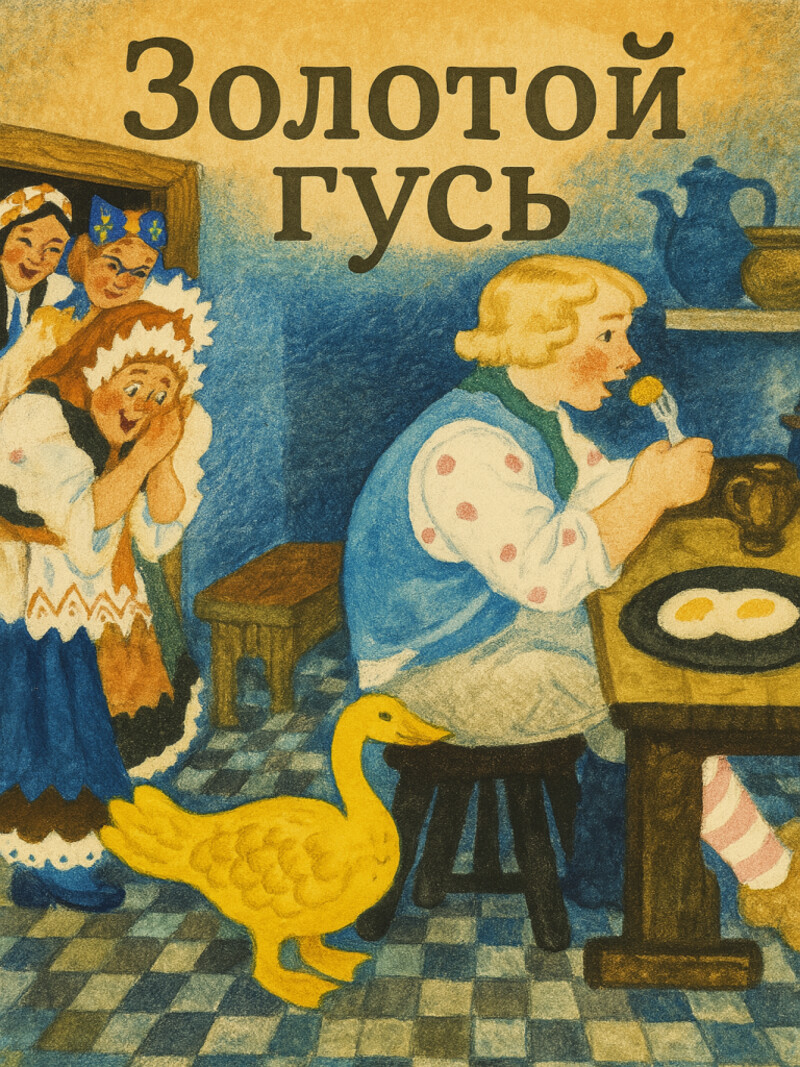 Добродушный, но простоватый парень по имени Дурень получает от незнакомца в знак благодарности за отзывчивое сердце чудесный подарок — золотого гуся. Каждый кто дотрагивается до гуся приклеивается к нему. Читайте в сказке, как удалось Дурню с помощью гуся и волшебника пройти много испытаний и жениться на принцессе…