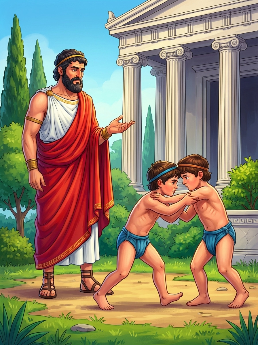 Не думали женихи, что нищий старик — это великий герой Одиссей, и потому, смеясь, разрешили ему участвовать в состязании. Легко натянул тетиву Одиссей и пустил стрелу через отверстия всех двенадцати топоров. Тут вернула Афина Одиссею настоящий облик. Не хилого старика, но могучего воина, хозяина Итаки, увидели женихи.