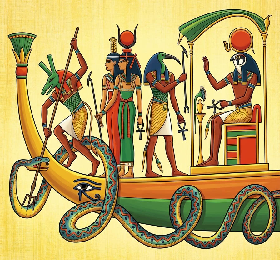 Много опасностей подстерегало богов, плывущих в Ладье Вечности, много удивительных приключений переживали они во время путешествия. Вот как проходило это путешествие.
