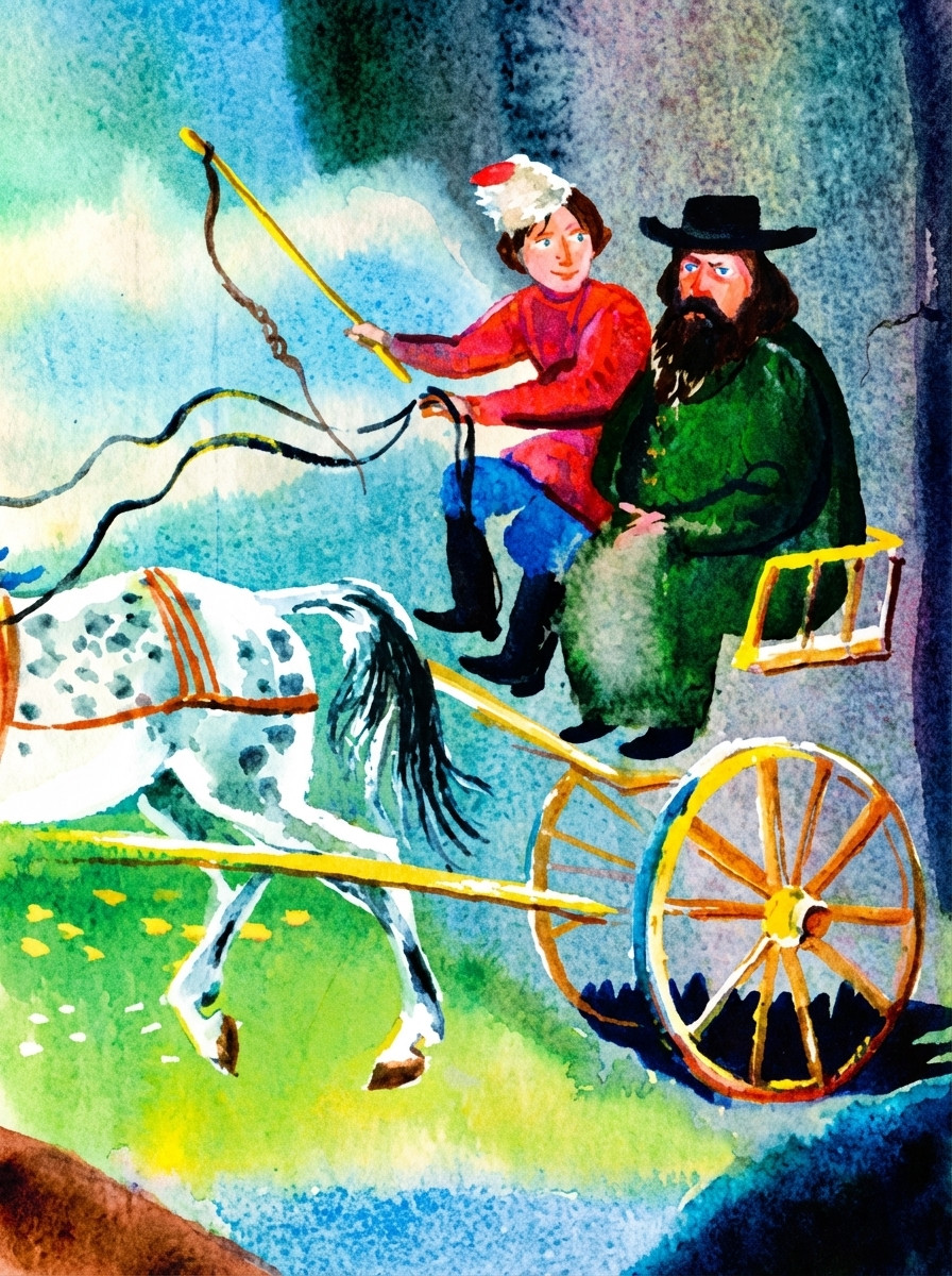 Послушались Агафоны добрых людей, запрягли кобылку, уселись на телегу и поехали. Пыль облаком поднялась.