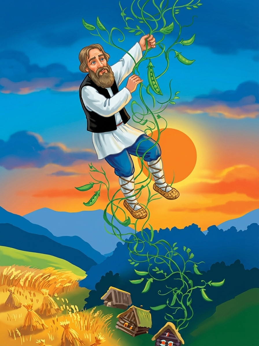 Обрадовались Агафоны: «Экой ты разумный, дедушка! Без тебя нам не догадаться бы!» Соскочили они с телеги, кобылка и втащила её на гору.