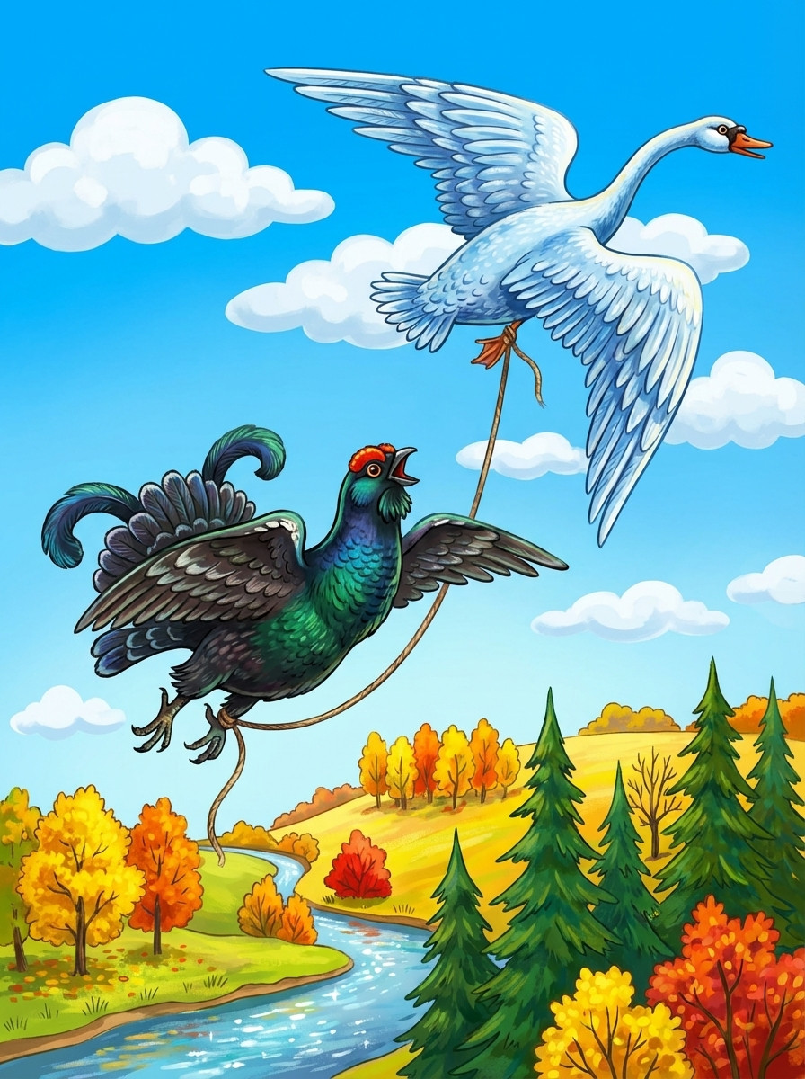 Бежала лиса, на ворон зазевалась — и попала в колодец. Воды в колодце было немного: утонуть нельзя, да и выскочить — тоже. Сидит лиса, горюет.