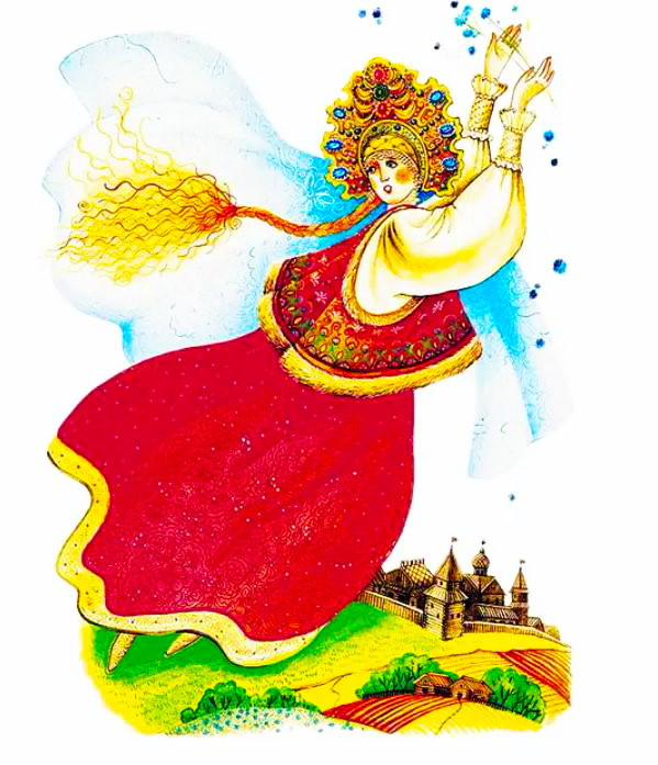 Обступили старика люди, наперебой начали торговать птичку: так она всем показалася! Пришел и колдун, тотчас признал деда и догадался, что у него за птица в клетке сидит. Тот дает дорого, другой дает дорого, а он дороже всех; продал ему старик птичку, а клетки не отдает; колдун туда-сюда, бился с ним, бился, ничего не берет! Взял одну птичку, завернул в платок и понес домой. «Ну, дочка, — говорит дома, — я купил нашего шельмеца!» — «Где же он?» Колдун распахнул платок, а птички давно нет; улетела, сердешная!