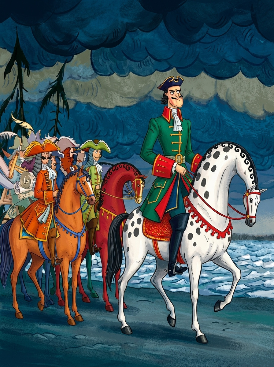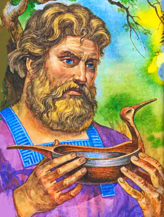 Поднялась волна, как высокая гора, вода с песком смешалася, и вышел на берег сам Водяной – хозяин Ильмень-озера. Оторопь гусляра взяла. А Водяной сказал таковы слова: