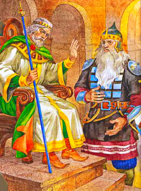 – Здравствуй, гость дорогой, долгожданный! Много я о тебе слышал от моего племянника Водяного – хозяина славного Ильмень-озера – про твою игру на гуслях яровчатых. И захотелось мне самому тебя послушать. Для того и корабли твои остановил и твой жребий именной два раза утопил.