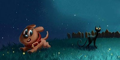 — Я? Я ловлю звездочки,— ответил Тявка,— вернее, хочу поймать хотя бы одну. Но они всё падают не там, где нужно. За забором падают. Кот снова рассмеялся: