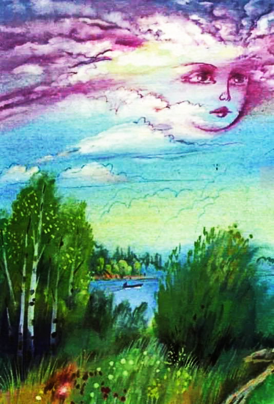 «Так это на меня рассердилась красивая женщина. Ей кажется, что я принесла дождь,—догадалась белая тучка.— Напрасно. Ну а раз не понравились мои волосы, я могу их убрать». И белая легкая тучка собрала свои розовые волосы в тугой узел. И сразу что-то изменилось. Новая прическа сделала тучку будто тяжелее и старше. И еще. Исчез чудесный розовый цвет, потому что солнце, увидев, как тучка собрала волосы-облачка, решило, что его красные лучи надоели. Солнце обиделось и отвернулось.