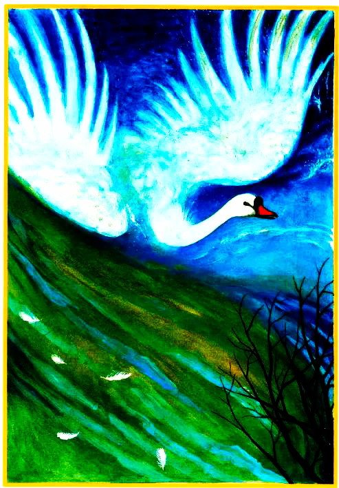 Только пропел, видит — на него с горки голубенькое колеско катится. До того легонькое, что сухие былинки и те под ним не сгибаются. Как ближе подкатилось, Лейко разглядел: это змейка колечком свернулась, головенку вперед уставила да на хвостике и подскакивает. От змейки в одну сторону золотые искры летят, в другую черные струйки брызжут. Глядит на это Лейко, а Ланко ему кричит: