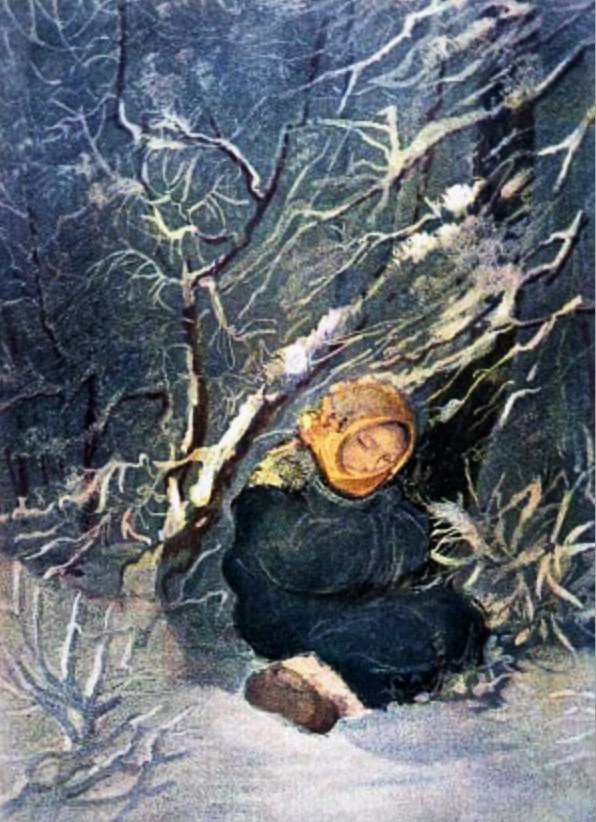 Когда ее уж вовсе стало засыпать снегом, вдруг открылся перед ней ходок в землю. Неширокий ходок, и темненько тут, а итти можно: ступеньки видать и тепло. Васенка и обрадовалась.