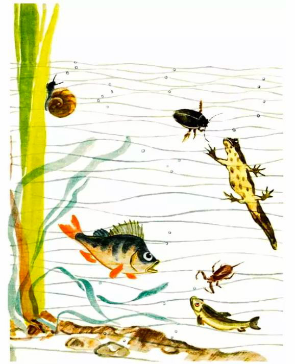 Посмотрели птицы вниз, а там из камыша торчит нос длинный, как карандаш, и тонкий, как спичка.