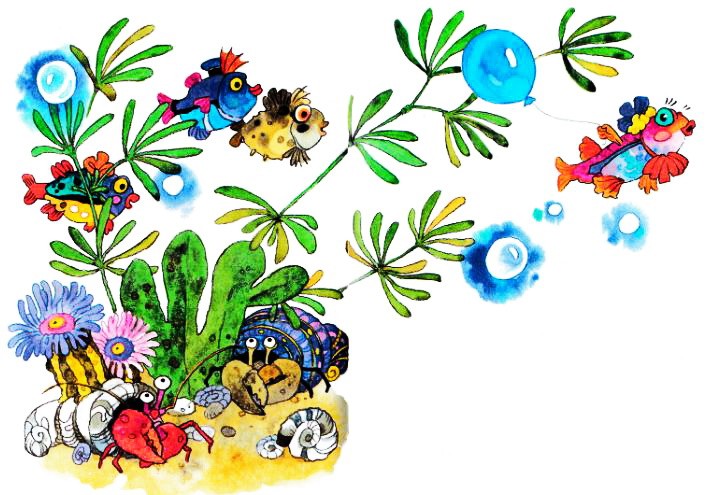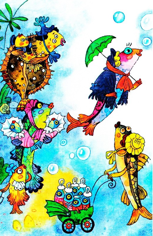 Камбала Фаина надела черепаховые очки и долго рассматривала горошину, выросшую под плавником Каролины.
